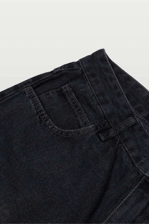 Bermuda jeans 100% algodão confeccionada em denim estonado, garantindo estrutura, resistência e aparência desgastada proposital (washed black) com toque contemporâneo.